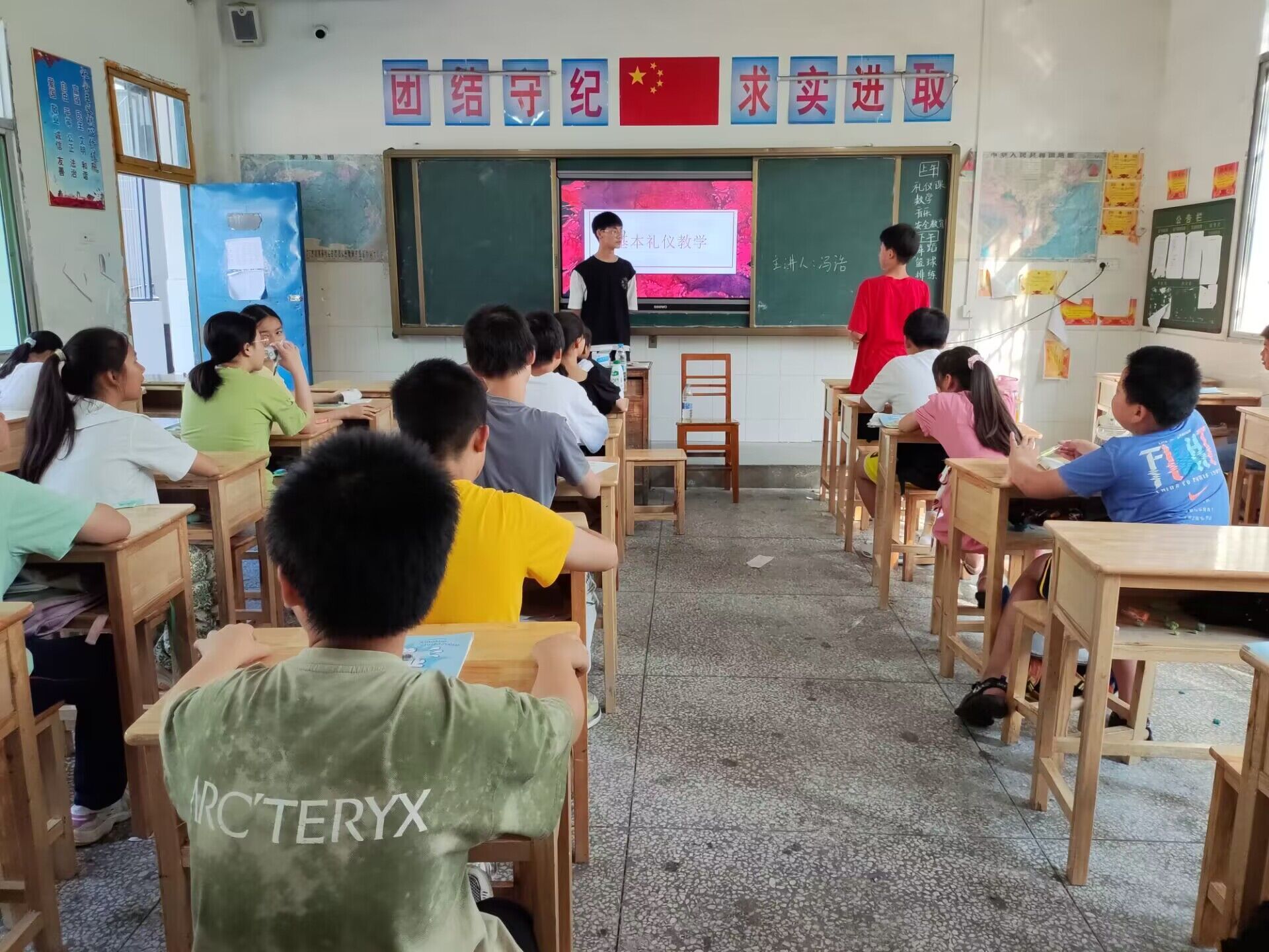随后,支教团的老师点名,确认同学到齐后,今日课程正式开始。在语文课上,老师先问了一个问题:“提到诗人,你会想到谁?”同学们列举了许多诗人,课堂氛围十分活跃。之后,老师便介绍了李白、杜甫、孟浩然、王维等诗人及他们的部分诗词作品。接着,学生们在玩诗词小游戏(春夏冬)和观看相关视频的过程中,不断加深着对于诗词的理解。在数学课上,老师先通过一个数学题目测试学生们的数学水平,再引出今天的课程主题——奥数。接着,他便讲解了一些经典奥数例题的解题技巧,帮助同学们掌握解题思路与方法。在音乐课上,老师带领大家学习歌曲《大梦想家》,“ 一个一个梦飞出了天窗,一次一次想穿梭旧时光……”孩子们用动听的歌声绽放梦想,点亮今天的音乐课堂,给老师带来了不少惊喜。