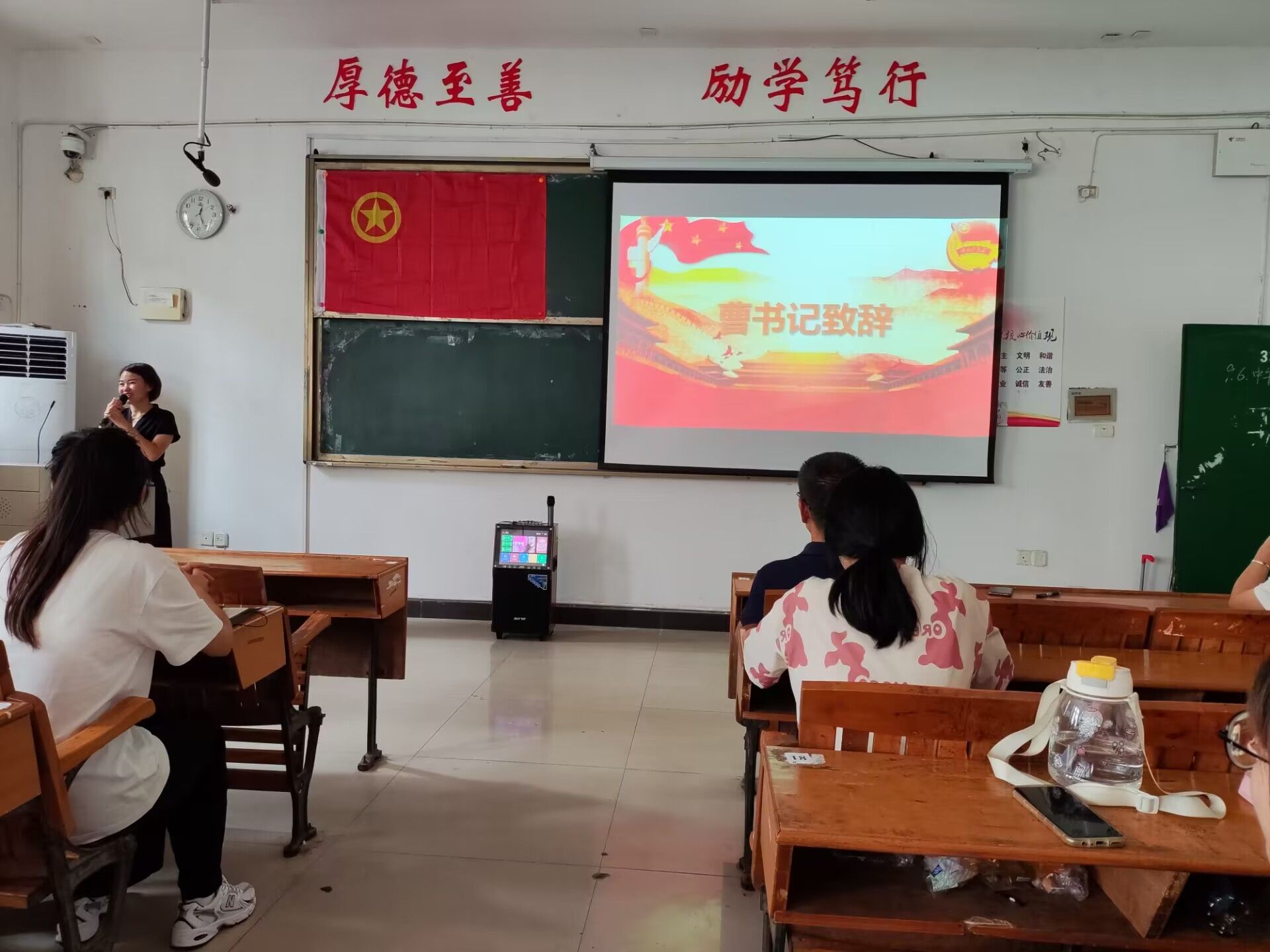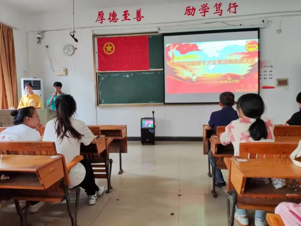 为全面提高学生干部的综合素质,进一步培养学生干部求真、务实、争先的工作作风,促进干部自身的沟通交流意识,增进团体合作精神,顺利开展迎新的各项工作,外国语学院于2023年9月6日中午12:20在英华楼3306教室召开学干大会暨迎新动员大会,莅临本次大会的嘉宾有外国语学院党委书记刘佳萍、党委委员曹金萍、团委书记冷全宝,20级辅导员江双莲,学生会副主席邓楠楠,以及各部门部长和学干们。