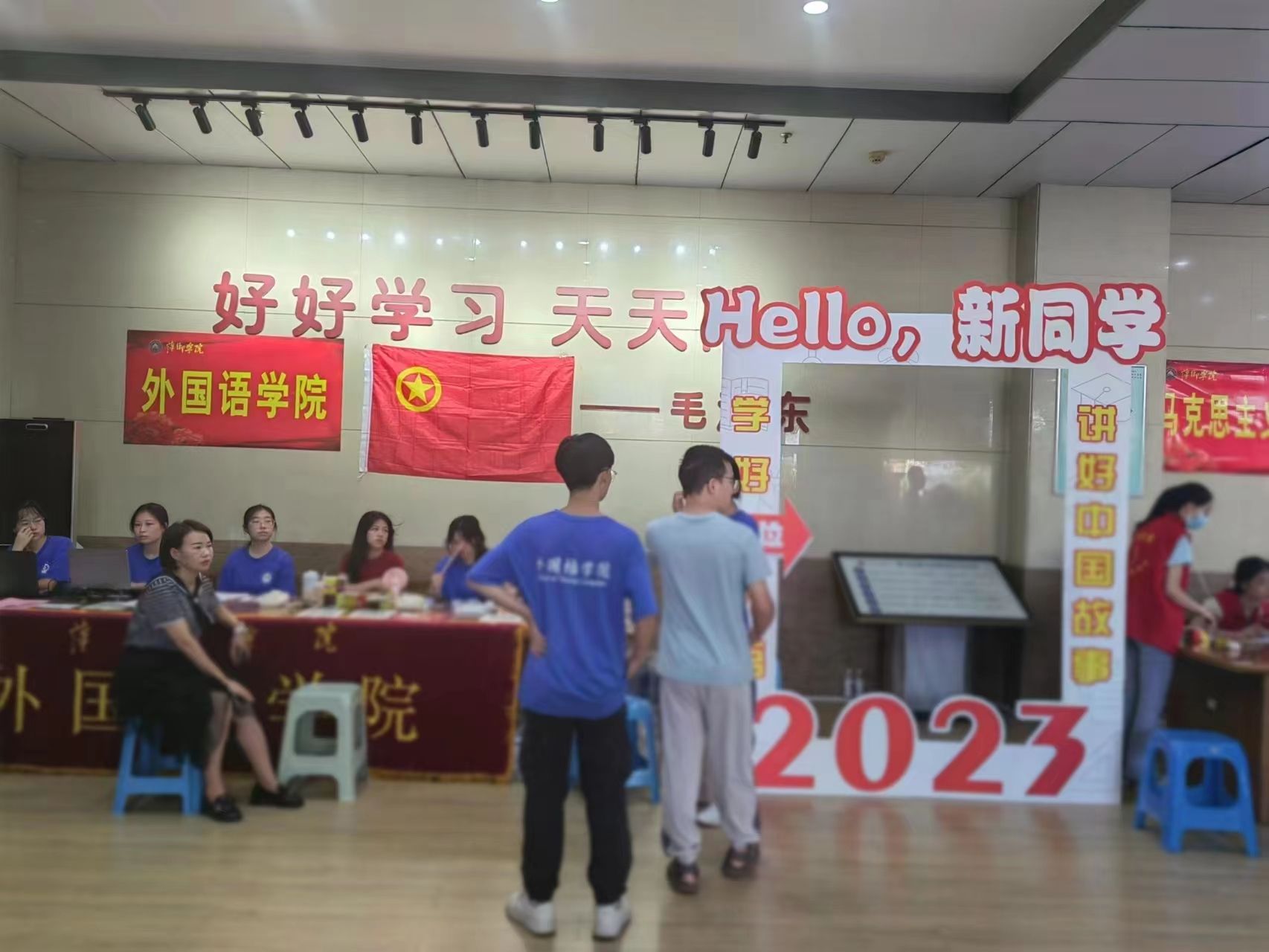 为了让新生们感受到外国语学院家一般的温暖,尽全力为他们提供最大的帮助,外国语学院于2023年9月10日在学校开展迎新活动。参加此次活动的有外国语学院党委书记刘佳萍,党委委员、学生英语党支部书记曹金萍,团委书记冷全宝,大一辅导员钟倩以及迎新接待人员。