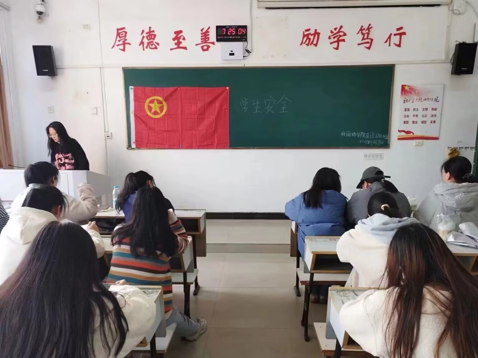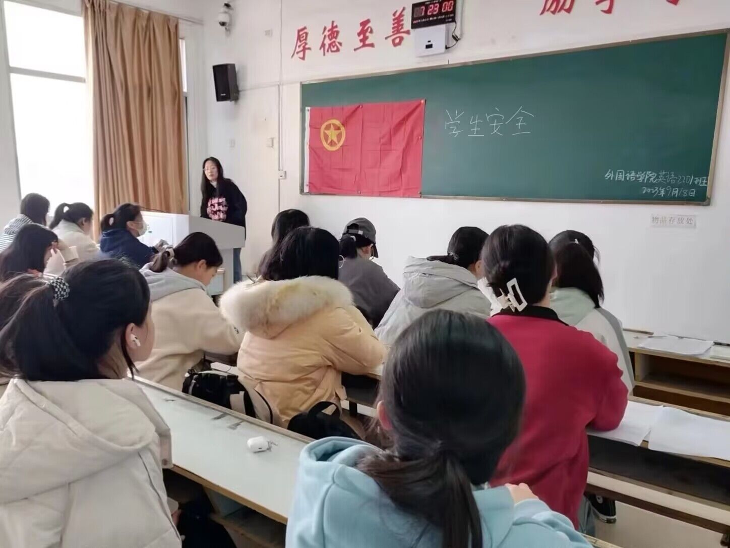 为了能够安全顺利地度过新学期,提升同学们的安全意识。外国语学院英语2201班于2023年9月18日在英华楼3503教室召开“学生安全”主题班会,此次活动由班长李晓雨主持,22英语1班全体成员参与。