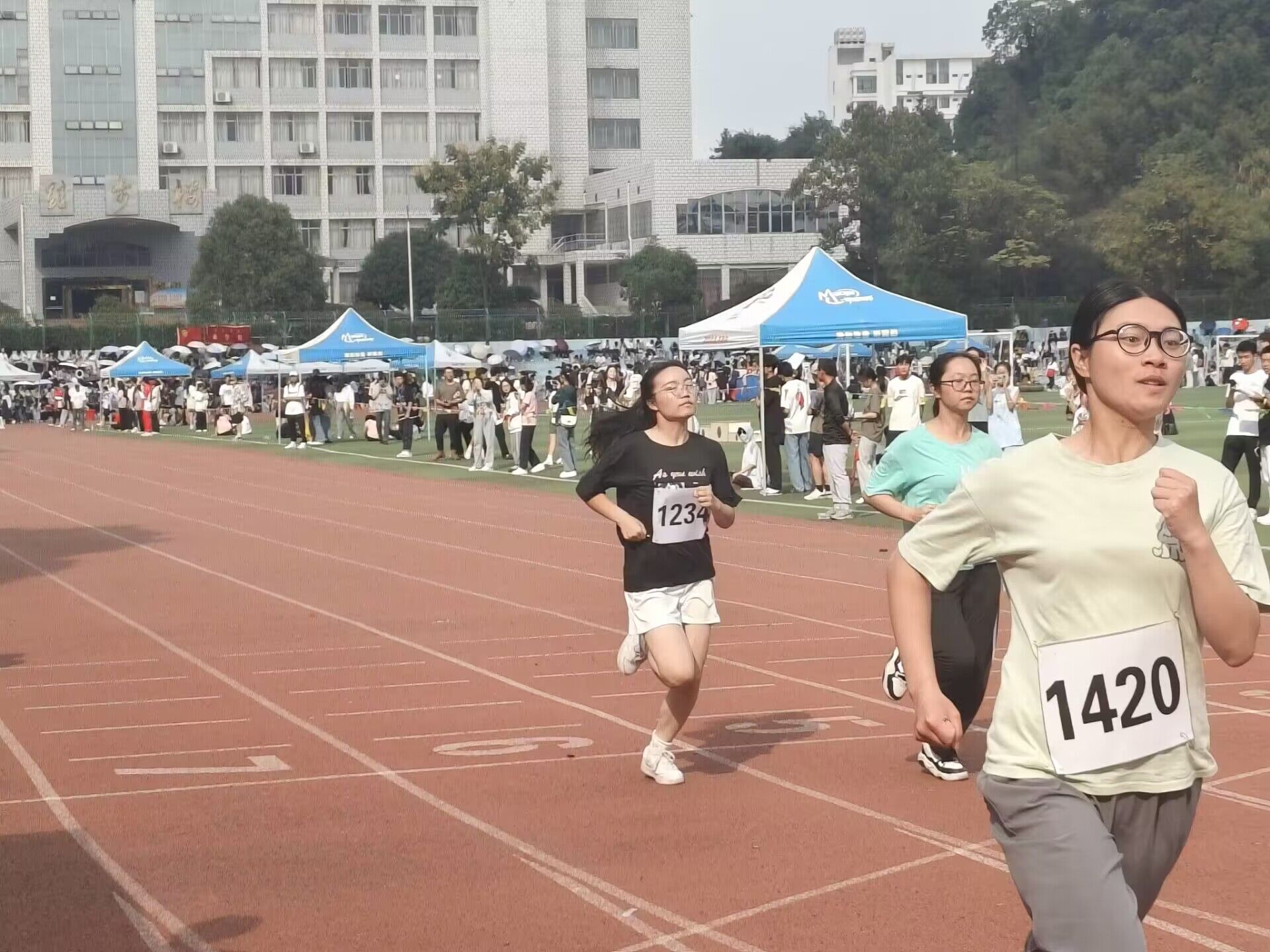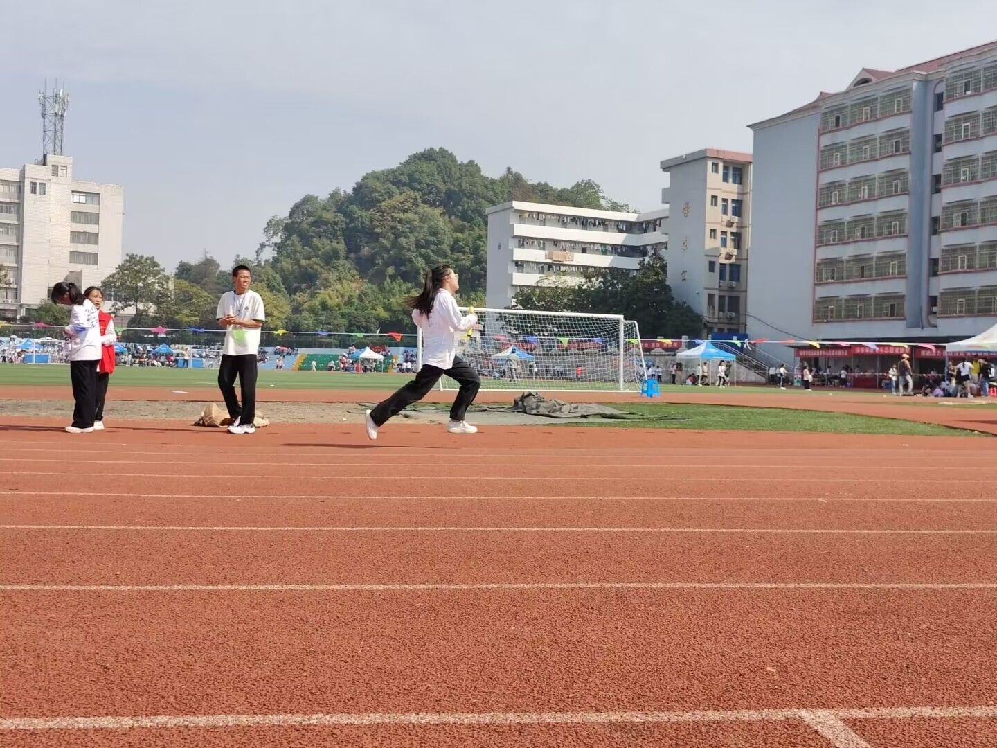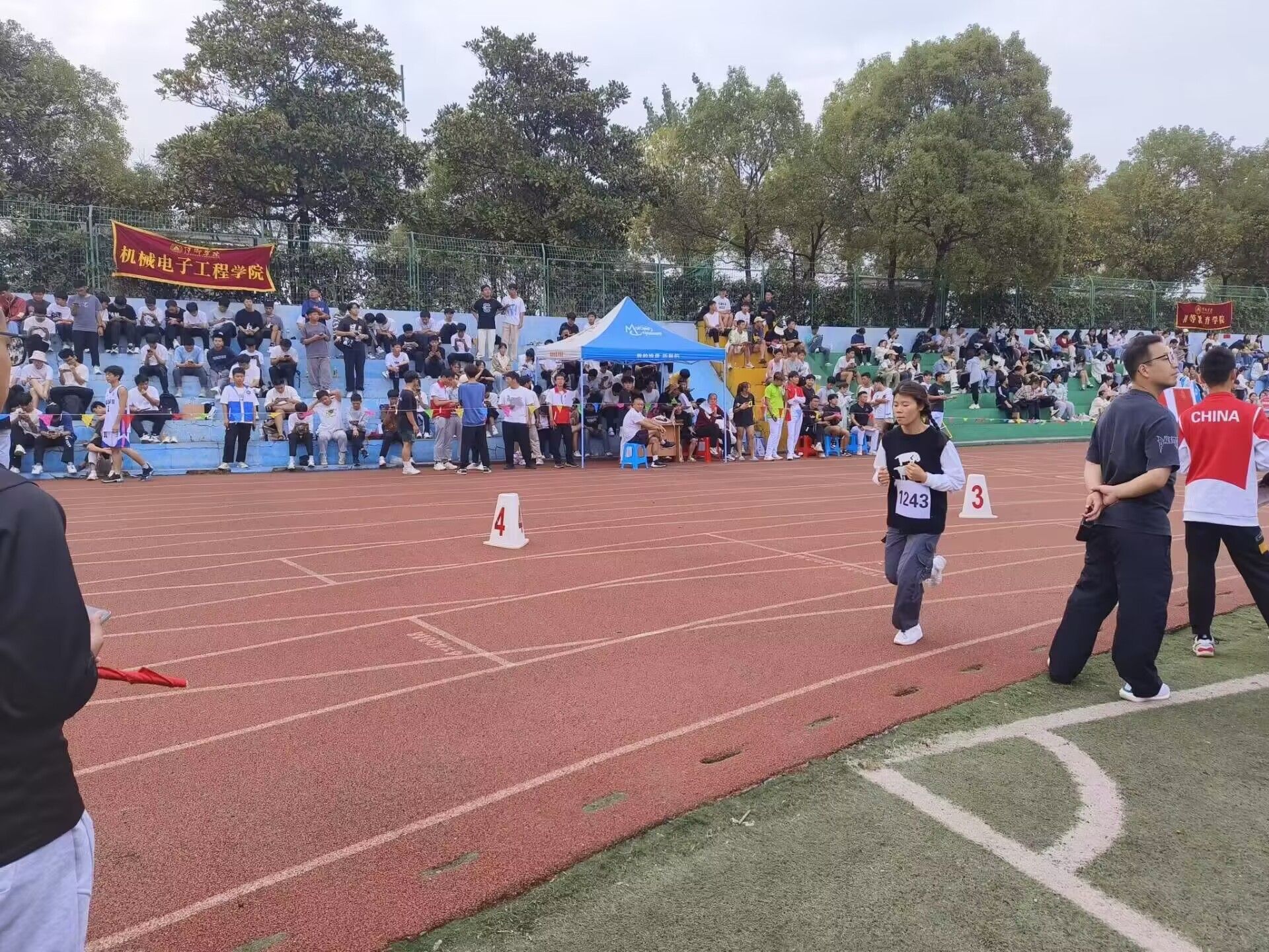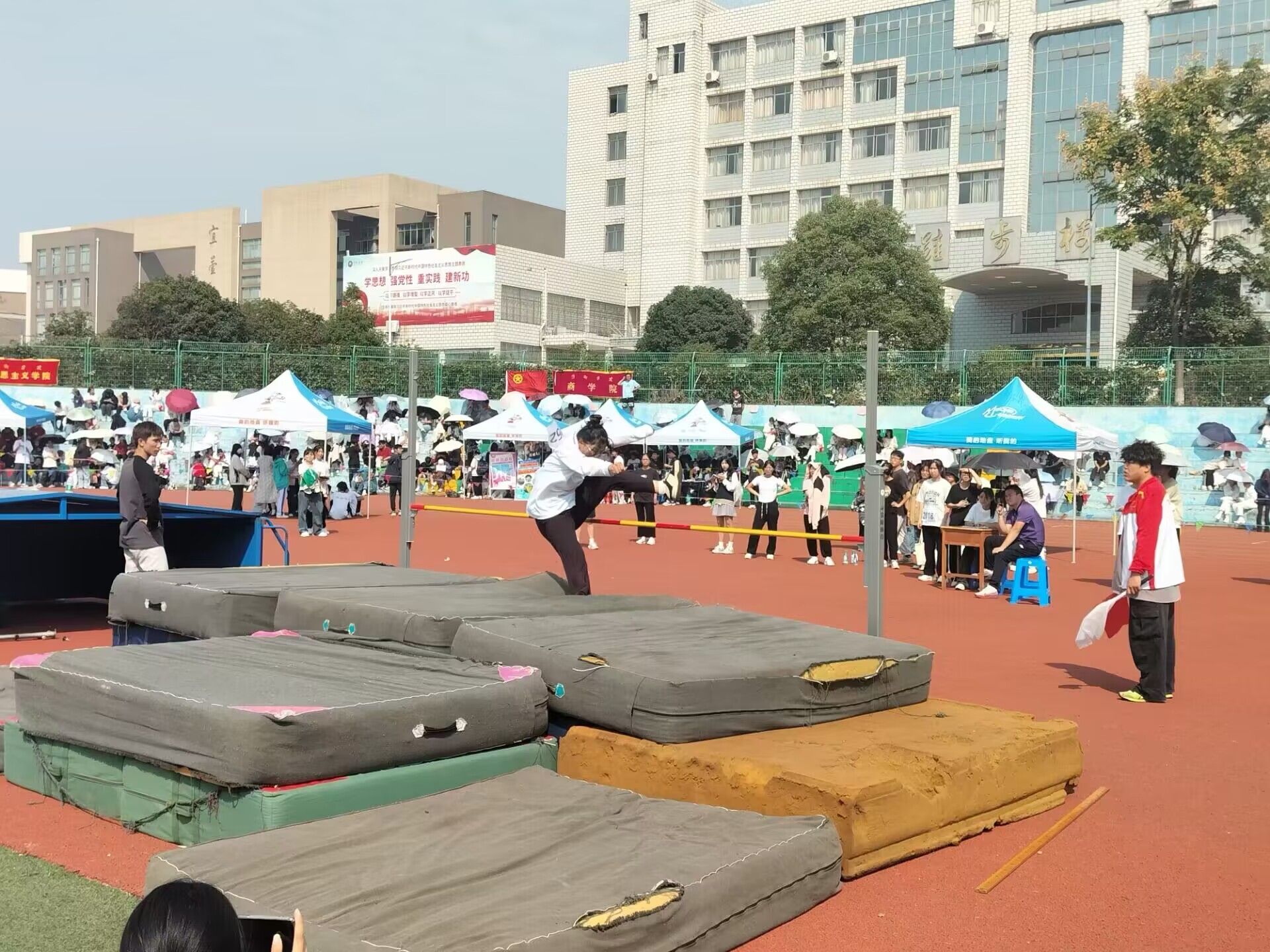 运动会开始了,谁说运动会只是学生的赛场,老师们也是运动场上的“王者”。教职工比赛开设拔河等集体项目。比赛现场气氛十分热烈。空中划过一条优美的抛物线,铅球从空中划过,落在竞赛场上,留下一个精彩的痕迹。每一次的投掷,都是激情的展现;每一次的落地,都是努力的结果。加油,赛出你们的水平!在阳光的照耀下跳高的比赛场地格外辉煌。外院的运动健儿们,用那矫键的身躯冲刺着一个又一个的高度。金秋的爽朗挡不住年轻而炙热的心,眼神笃定地望着前方,所有的期待都化为力量,向着终点,哨声响起,外院学子的欢呼声此起彼伏,外院4×400m男子接力赛荣获第一组小组第一!用青春挥洒着汗水的你们是外院的骄傲!上午的比赛项目在不知不觉中结束了,随之而来的下午的比赛,外院运动健儿继续以饱满的热情迎接比赛。100m短跑开始了,起跑线像一条绷紧了的弓弦,瞬间射出了八支“彩色的箭”。同时男子跳远与女子三级跳远那边的比赛也如火如荼。离弦箭似的助跑,蚂蚱似的起跳,引起阵阵惊叹,落地的瞬间,你触到了沙的柔软,不管怎样,荣誉永远属于你们!接着800m比赛开始了,外院的运动健儿们竭尽全力,或一骑绝尘,或全力以赴,用青春挥酒着汗水。