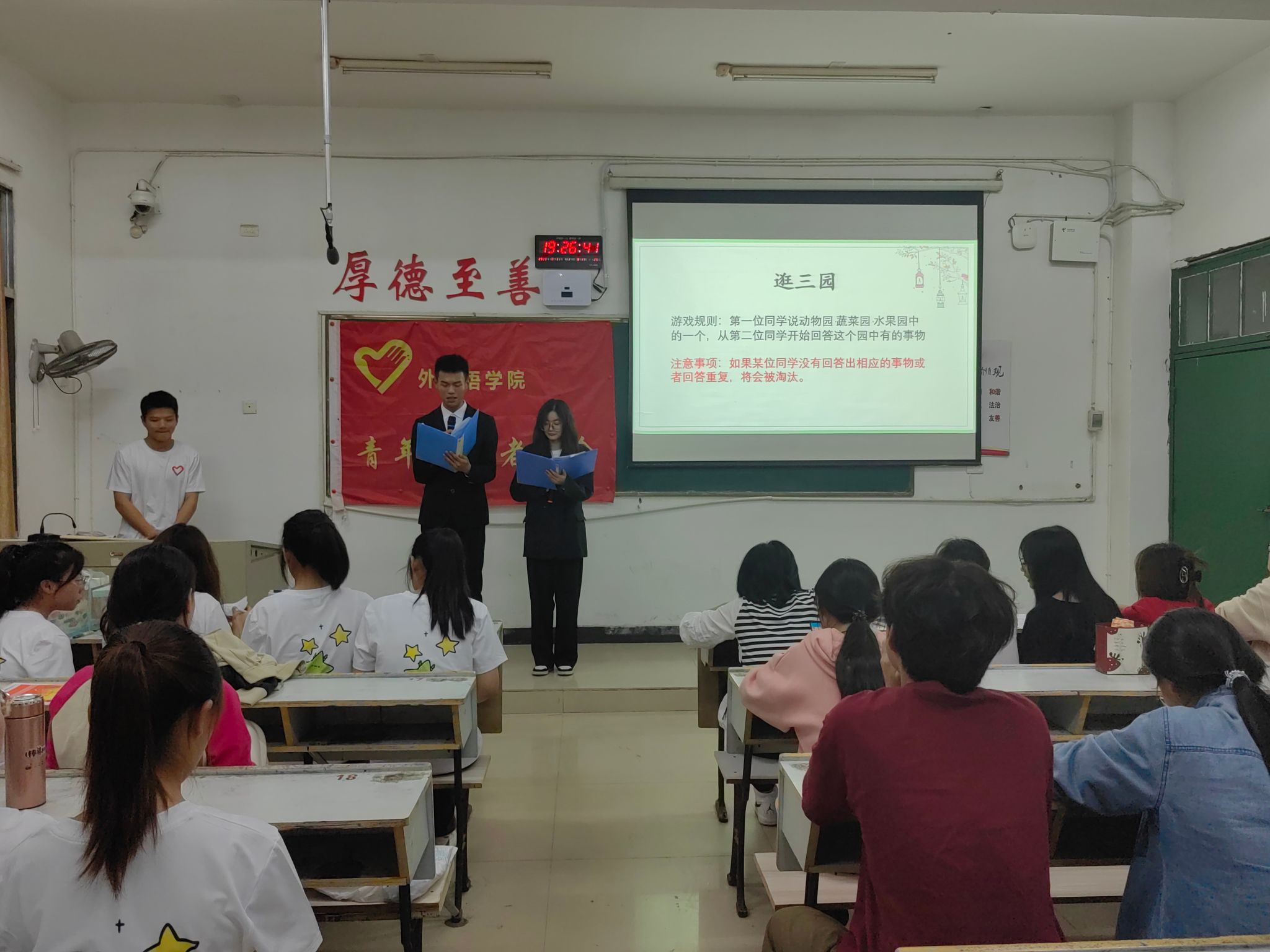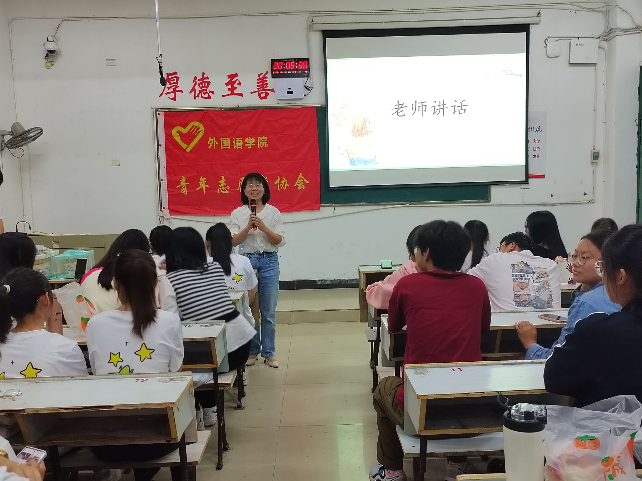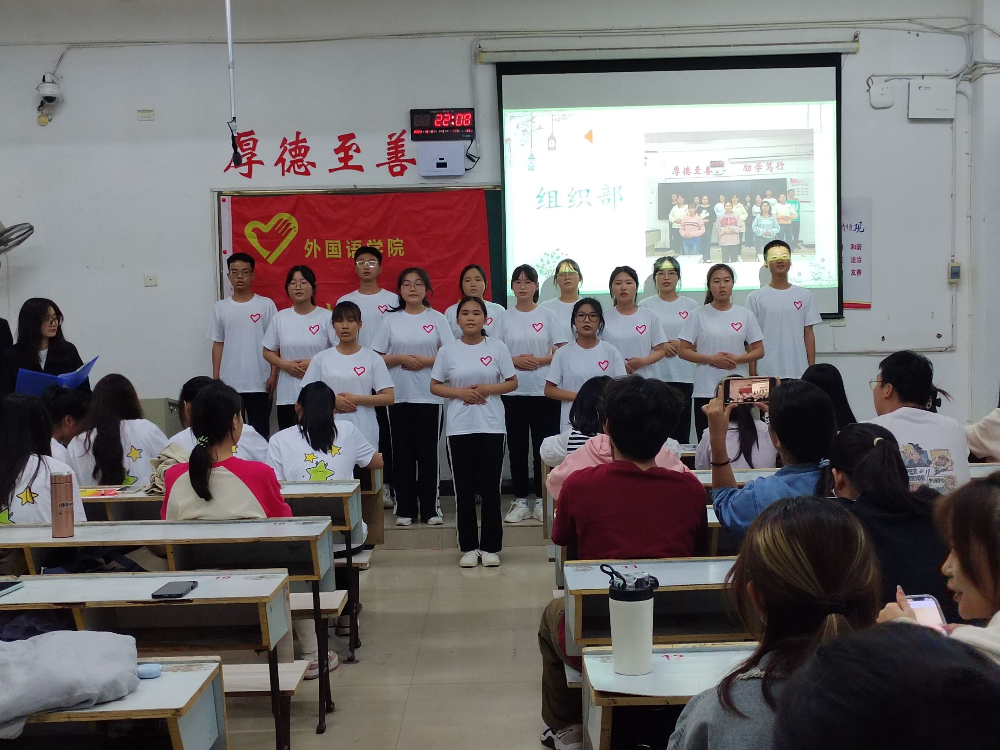 追寻灿烂时光,奏响青春乐章。为了更好地展现“奉献友爱,互助进步”的志愿者精神,加强协会内部的沟通交流,外国语学院青年志愿者协会于2023年10月31日,周二19:10在英华楼3304教室举办了“青年志愿者之歌合唱比赛”活动,参与本次活动的有外国语学院青年志愿者协会指导老师江双莲老师和部分21级理事会成员,22级理事会成员以及23级青协成员。