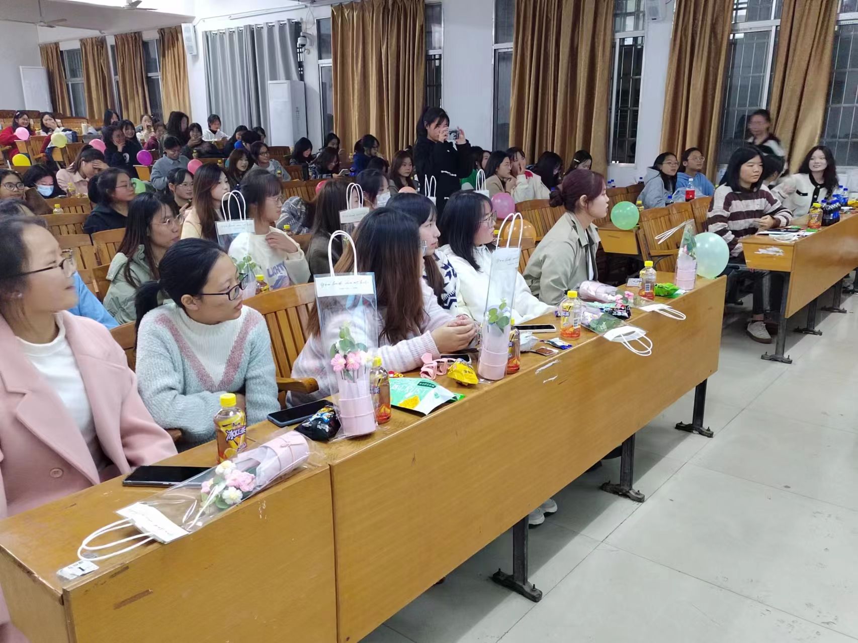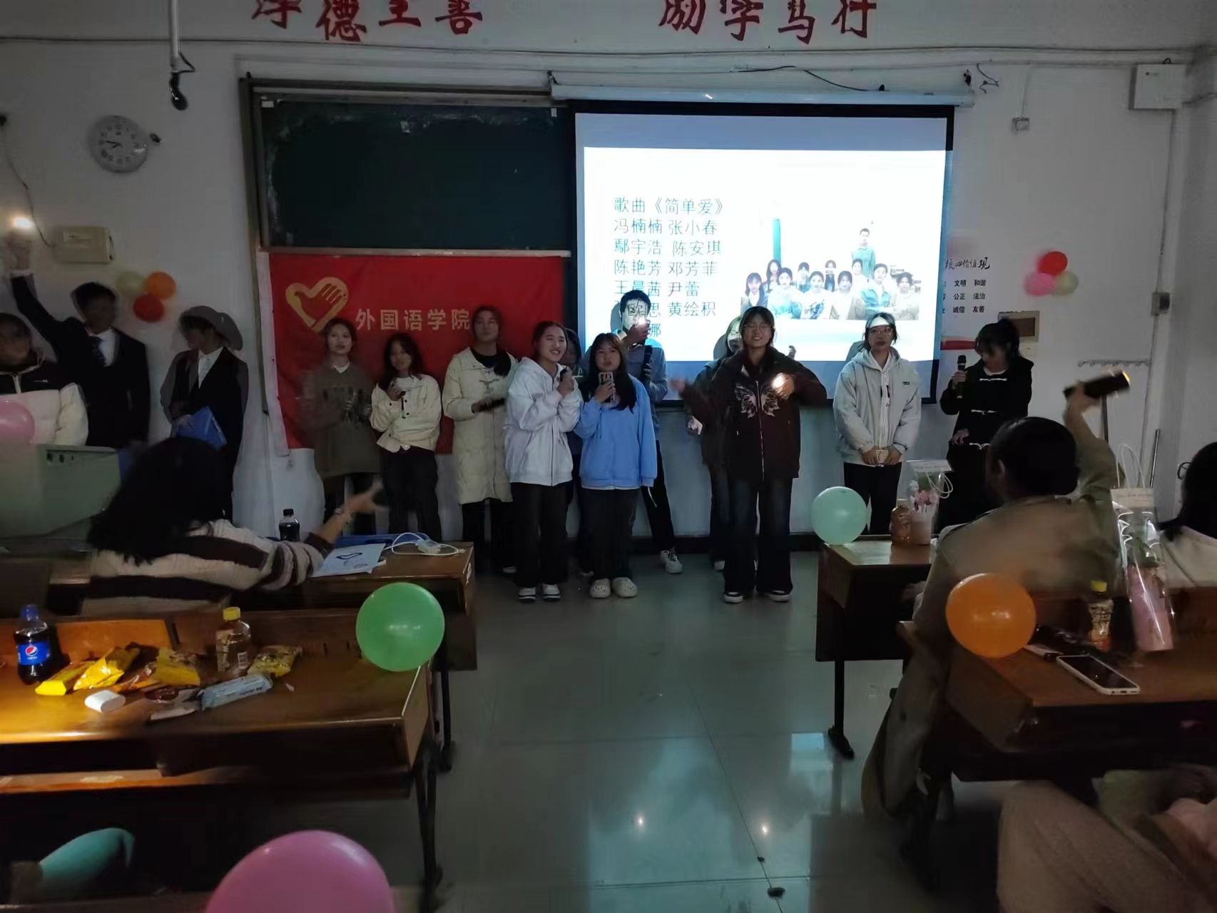 首先,由主持人徐志谦和吕梦妮宣布活动开始。在观众热烈的掌声中,文宣部的小伙伴们呈现了歌曲《当你》,接着由组织部的洪莹和史婉茹演唱了《后来》。人资部的同学们带来的歌曲《等你下课》过后,进入到第一轮游戏环节“抢凳子”,小伙伴们积极参与,教室内弥漫着浓厚的欢快氛围。游戏结束后,网络部的刘丽萍和王忆妮演唱了《我们俩》,随后新闻部的成员合唱了《简单爱》,欢快的歌曲营造出温馨的氛围,观众们纷纷打开手机闪光灯,随着歌声摇摆。接下来,办公室的黄胜兰、廖佳敏和罗静雯合唱了歌曲《遇见》,社会实践部成员们合唱了歌曲《起风了》。然后进入第二轮游戏环节“心有灵犀猜成语”,小伙伴们在游戏中你划我猜,既收获了快乐,也增进了默契。游戏结束后,由办公室部分成员带来一首《歌曲串烧》,一展文艺风采。紧接着,新闻部和办公室部分成员演唱了《dear no tag》和《不要忘记我爱你》。最后,办公室的邹奕姿和熊盼演唱了《你从未离去》,为此次表演划上圆满的句号。接下来,主持人为大家播放了记录三个年级青协成员美好瞬间的视频,在点滴中展现青协各级成员之间的友爱与关怀。然后,会长助理邱敏发表了讲话,她总结了此次活动的意义,并祝福21级理事会的学姐们在未来道路上越走越远,也希望23级青协成员在这个大家庭中不断发现更好的自己。最后,全体外国语学院青协成员一起合影留念。至此,本次活动圆满结束。