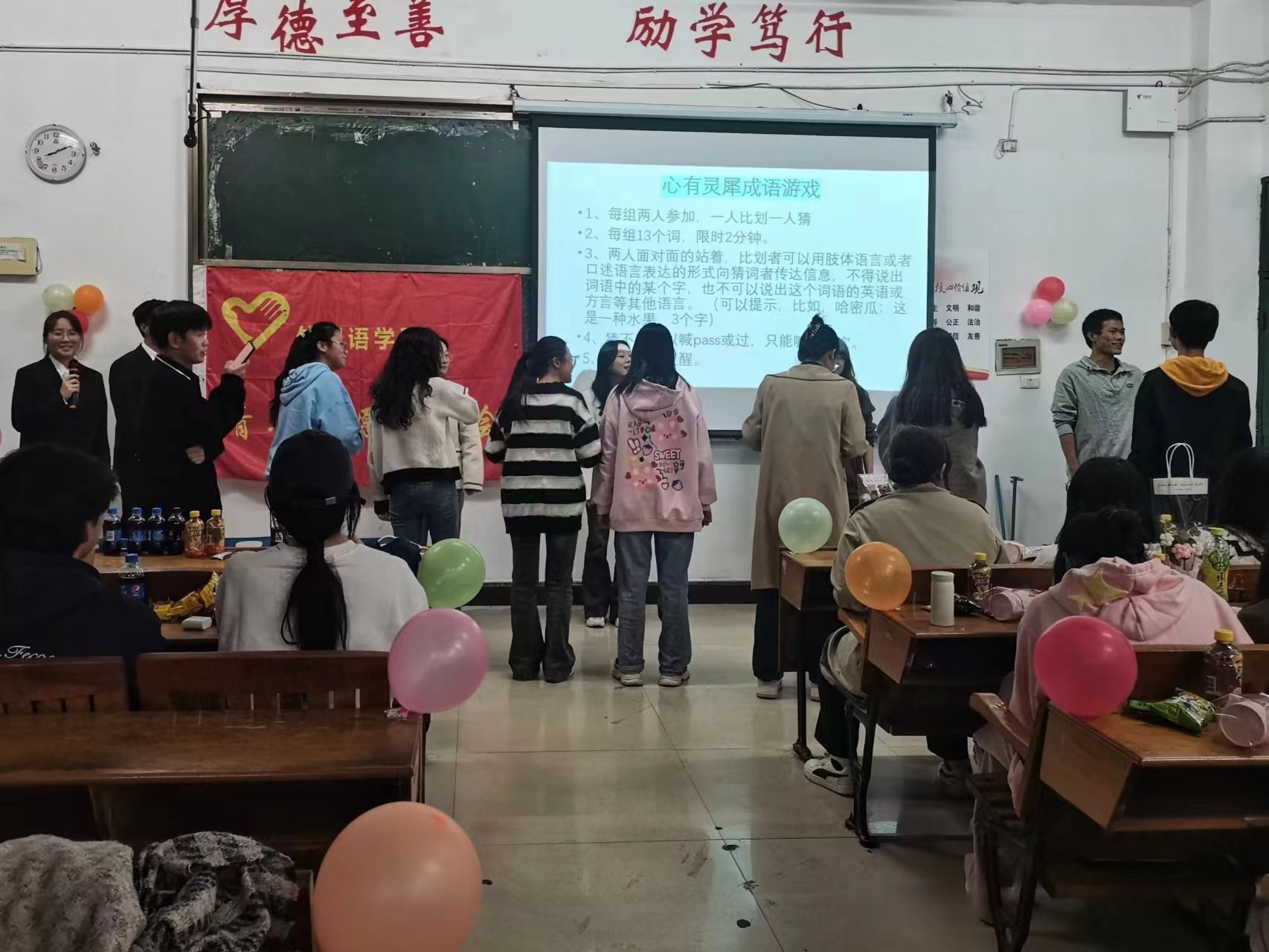 为了欢送外国语学院青协21级理事会成员,增强协会各级成员之间的联系以及让23级青协成员更熟悉青协这个大家庭,外国语学院青年志愿者协会于2023年11月19日,周日晚7:10在英华楼3306教室举办“新老生内部交流会”活动,参与本次活动的成员有外国语学院青协21级理事会成员,22级理事会成员以及23级青协小伙伴。